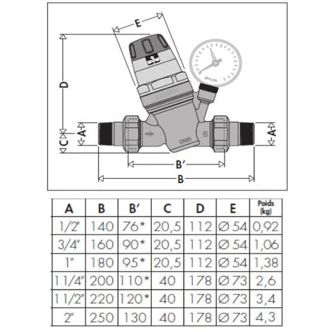 - Pression aval réglable de 1 à 6 bar