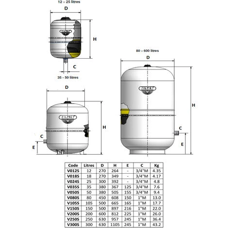 - Matériau Membrane/Vessie: EPDM