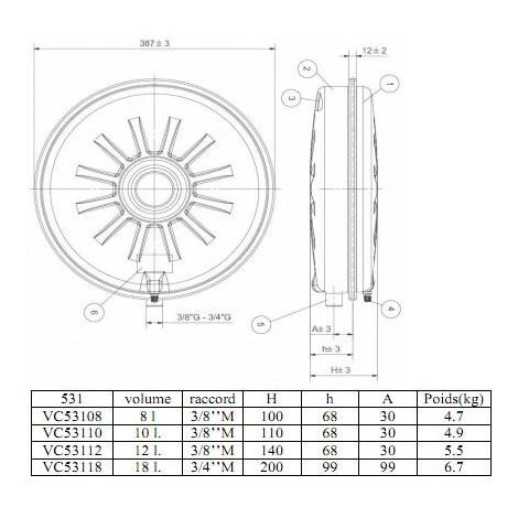 | Vase plat circulaire D.38 12L Fonction: Le vase d’expansion absorbe les variations du volume d’eau dues aux changements de température dans les installations de chauffage. Construction: Corps acier laqué rougeRaccord M acierMembrane SBR selon DIN 4807 Caractéristiques fonctionnelles: Pression de service 3 barPression d’épreuve 4,5 barTempérature d’utilisation maxi +90°CPré gonflage usine: 1 bar |